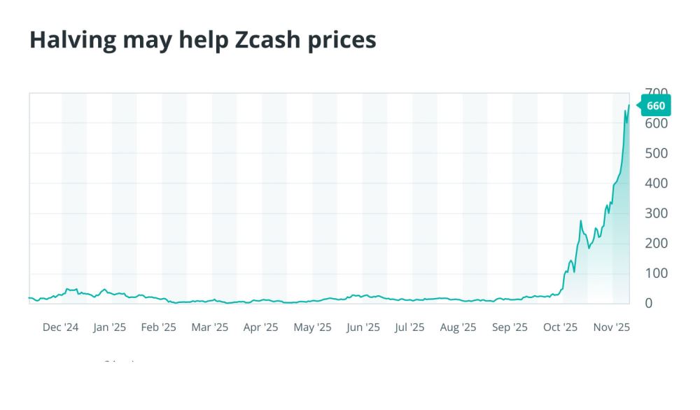 11月中旬的Zcash减半将减少区块奖励并收紧供应,可能进一步推动价格增长。早些时候,在2025年8月,网络激活了其NU6.1测试网升级,引入了对屏蔽交易的改进和关键漏洞修复。